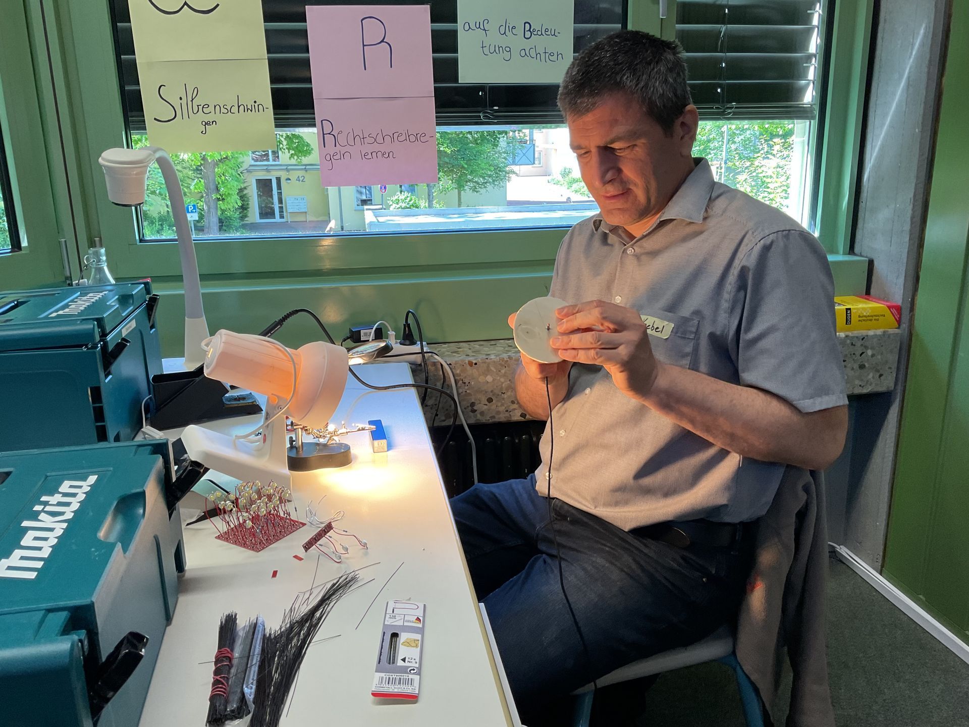 Am Montag (19.05.2025) hieß es für die Klasse 4 aus Wachbach: Kein Unterricht aber dafür ab in die Kopernikus-Realschule! Herr Knebel und Herr Kurfeß führten mit den Kindern eine Technik-Projekt durch, bei dem am Ende eine schöne Lampe entstand. Nachdem das Vorgehen gemeinsam besprochen wurde, ging es los: abmessen, sägen, schleifen, kleben, malen usw.! Es hat sehr viel Spaß gemacht und zum Schluss konnte jeder seine Lampe mit nach Hause nehmen.