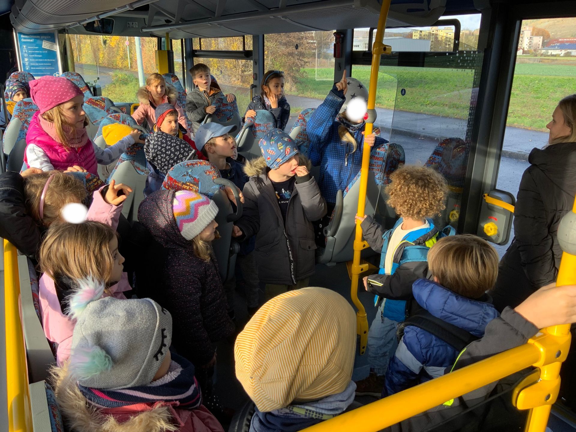 Am Mittwoch konnte die erste Klasse in der extra für uns angefahrenen BusSchule alles wichtige für eine sichere Busfahrt lernen: Vom Anschnallen, Schulranzen verstauen, Festhalten bis hin zum richtigen Aus- und Einsteigen. Wir sind nun echte Busexperten.