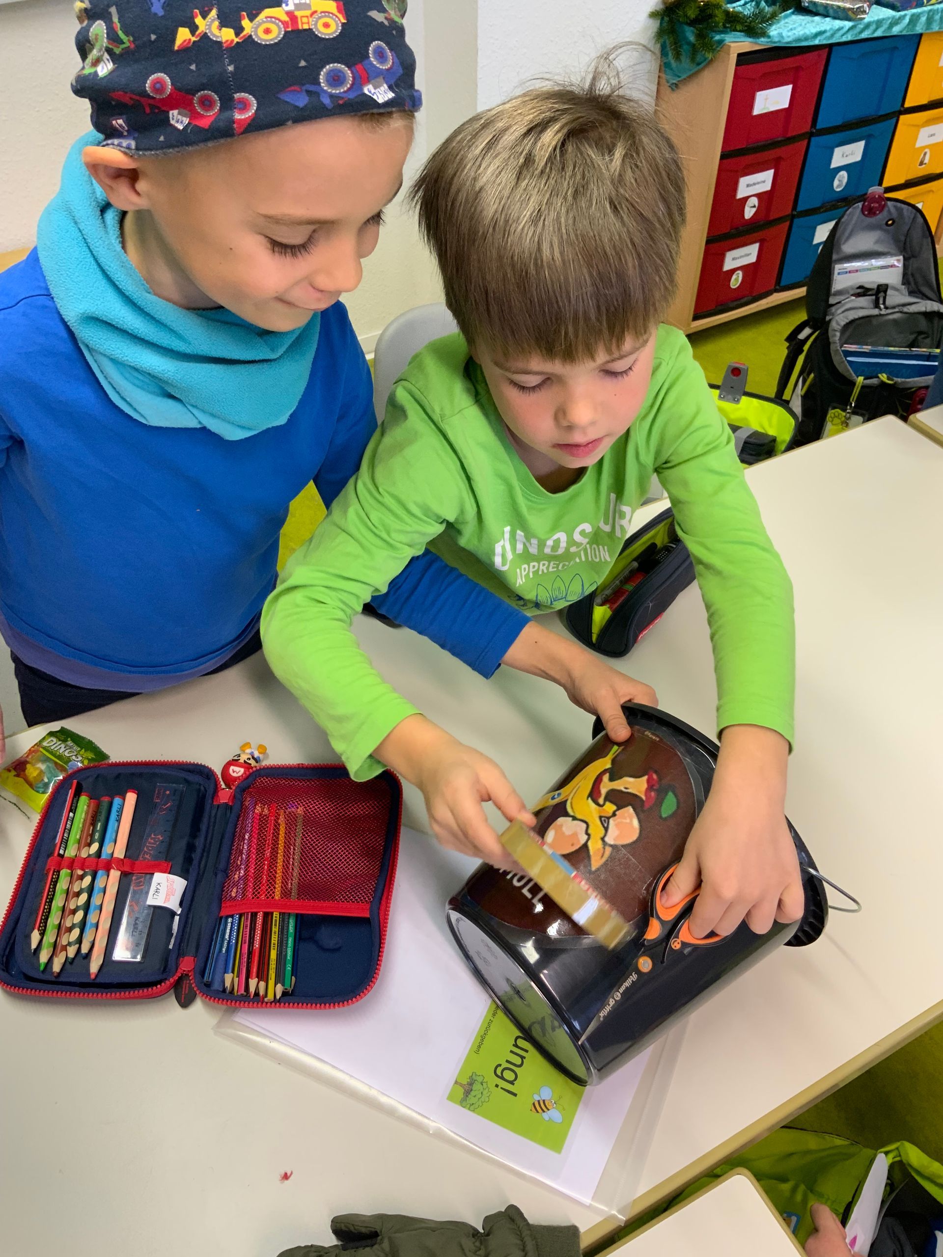Jeden Morgen wird nun ein Karton gemeinsam mit der ganzen Schulgemeinschaft geöffnet.