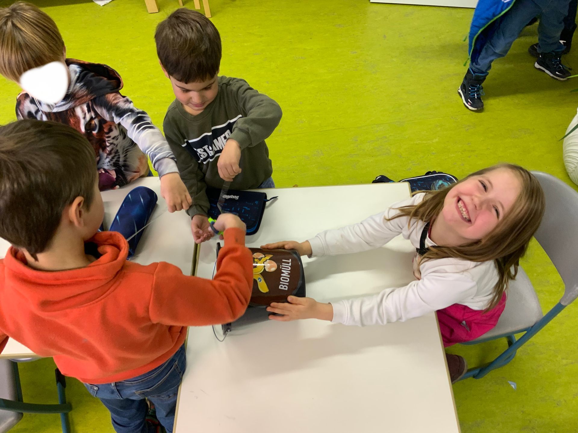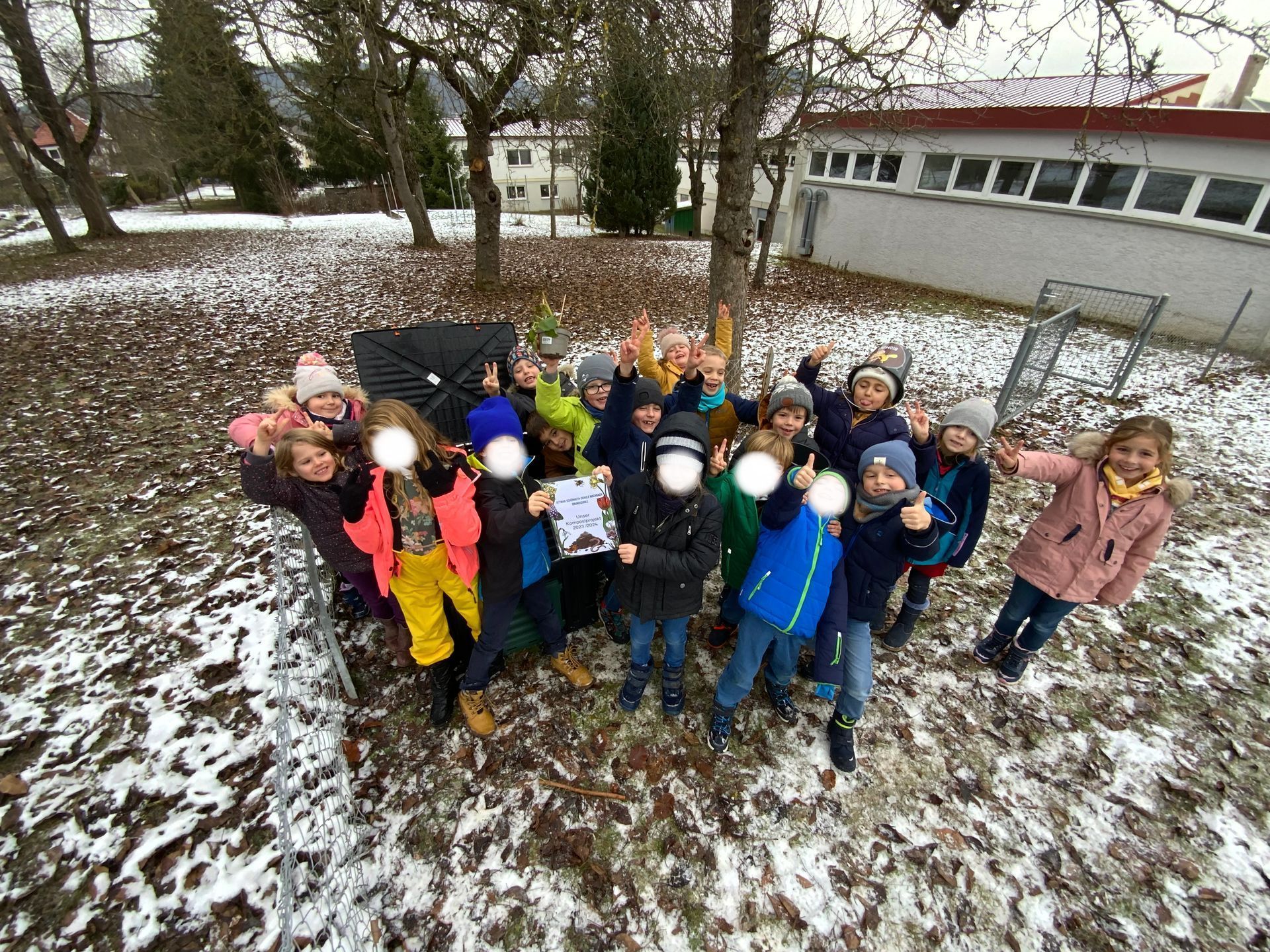 Die Klasse 1 hat in der vergangenen Woche den Grundstein für unser gemeinsames Kompostprojekt der Schule gelegt: Es wurden Biomülleimer zum Sammeln organischer Abfälle in den Klassen verteilt, die dann auf unserem Kompost gesammelt werden. Die Grundlage für unseren Kompost waren die Abfälle der Adventskränze aus Klasse 2. Einen Plan für die entstehende fruchtbare Erde im Sommer gibt es auch schon…