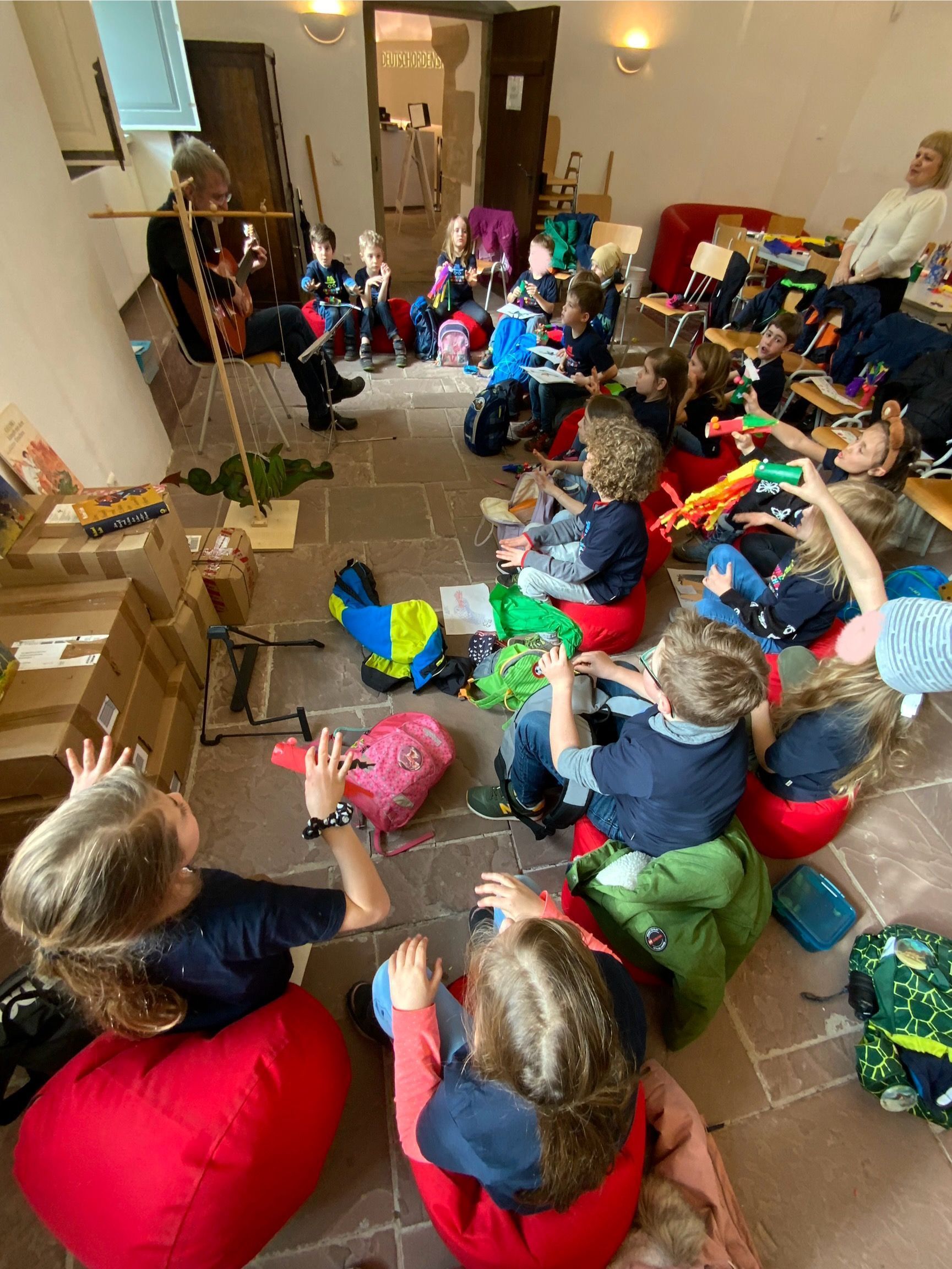 Die Klassen 1 und 2 besuchten das Schloss in Bad Mergentheim, um auf Drachenjagd zu gehen. Bei einem Rundgang wurden Drachen im Gebäude betrachtet, gemalt, gebastelt und Drachengeschichten erzählt.
