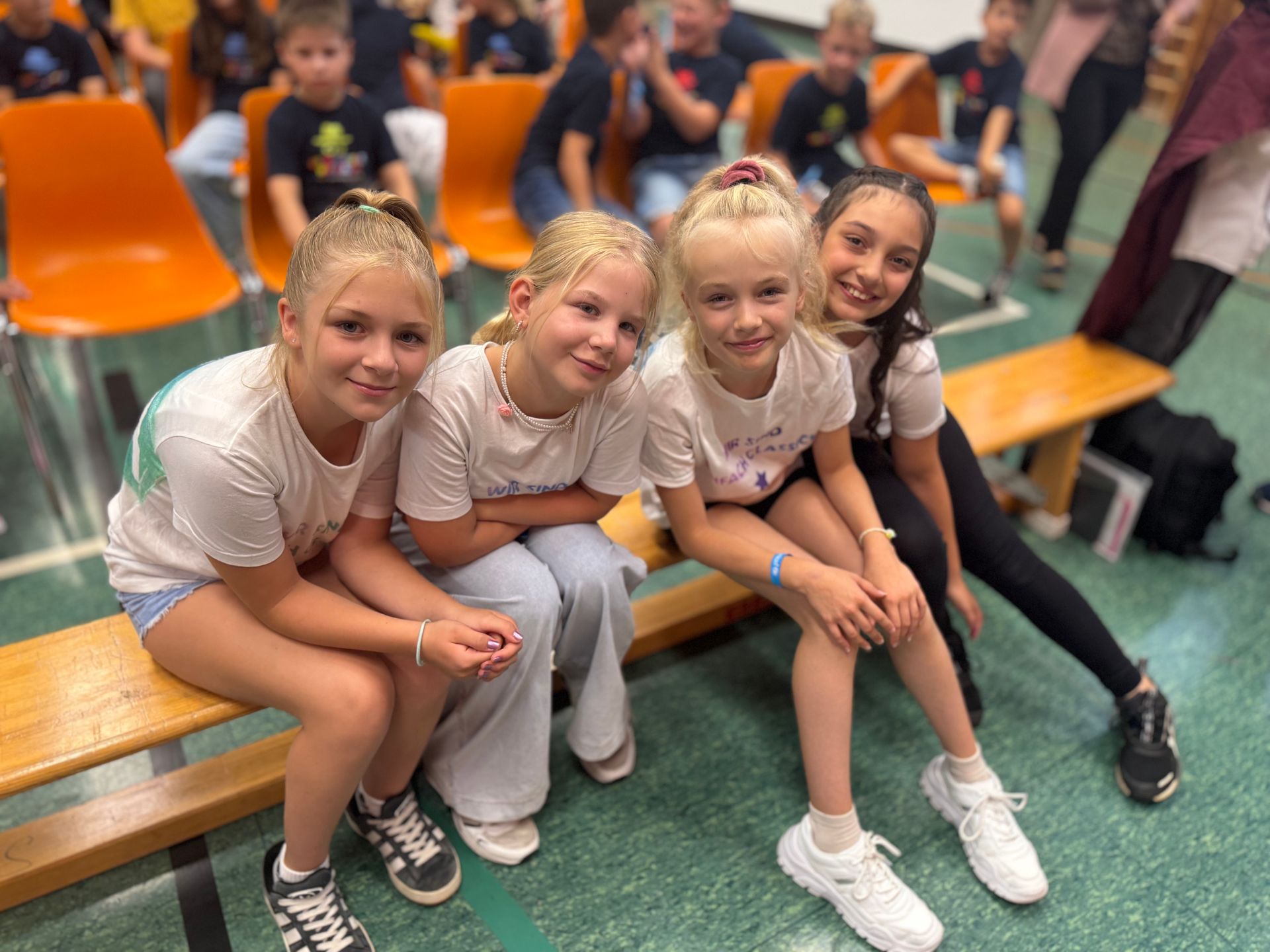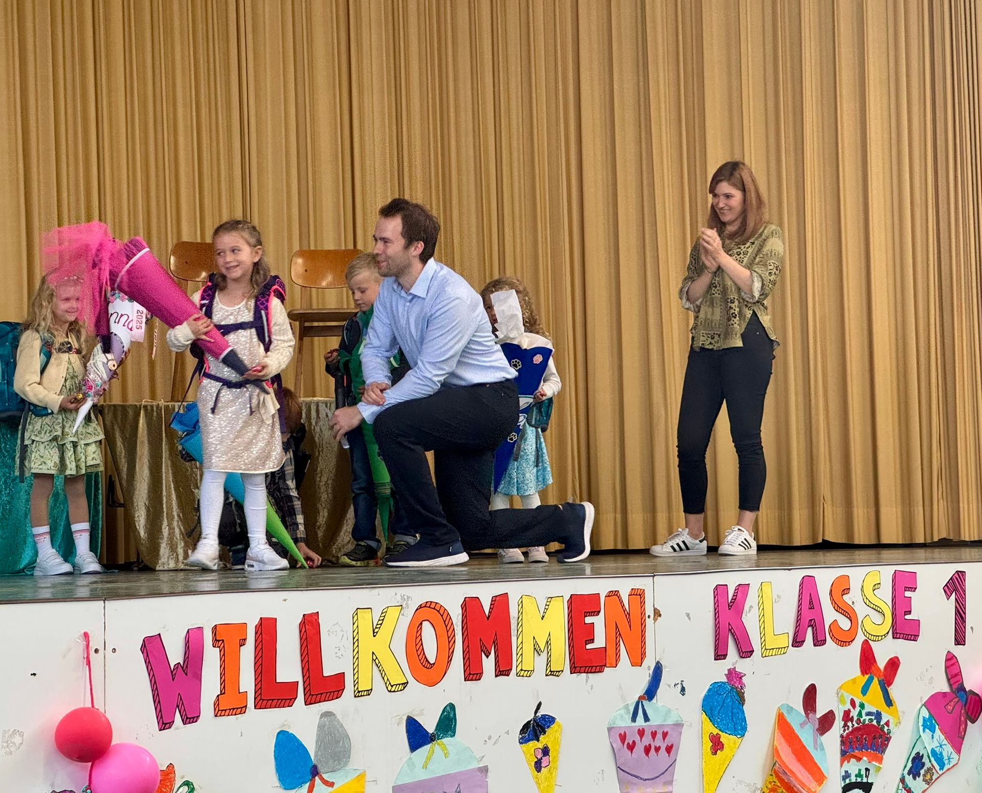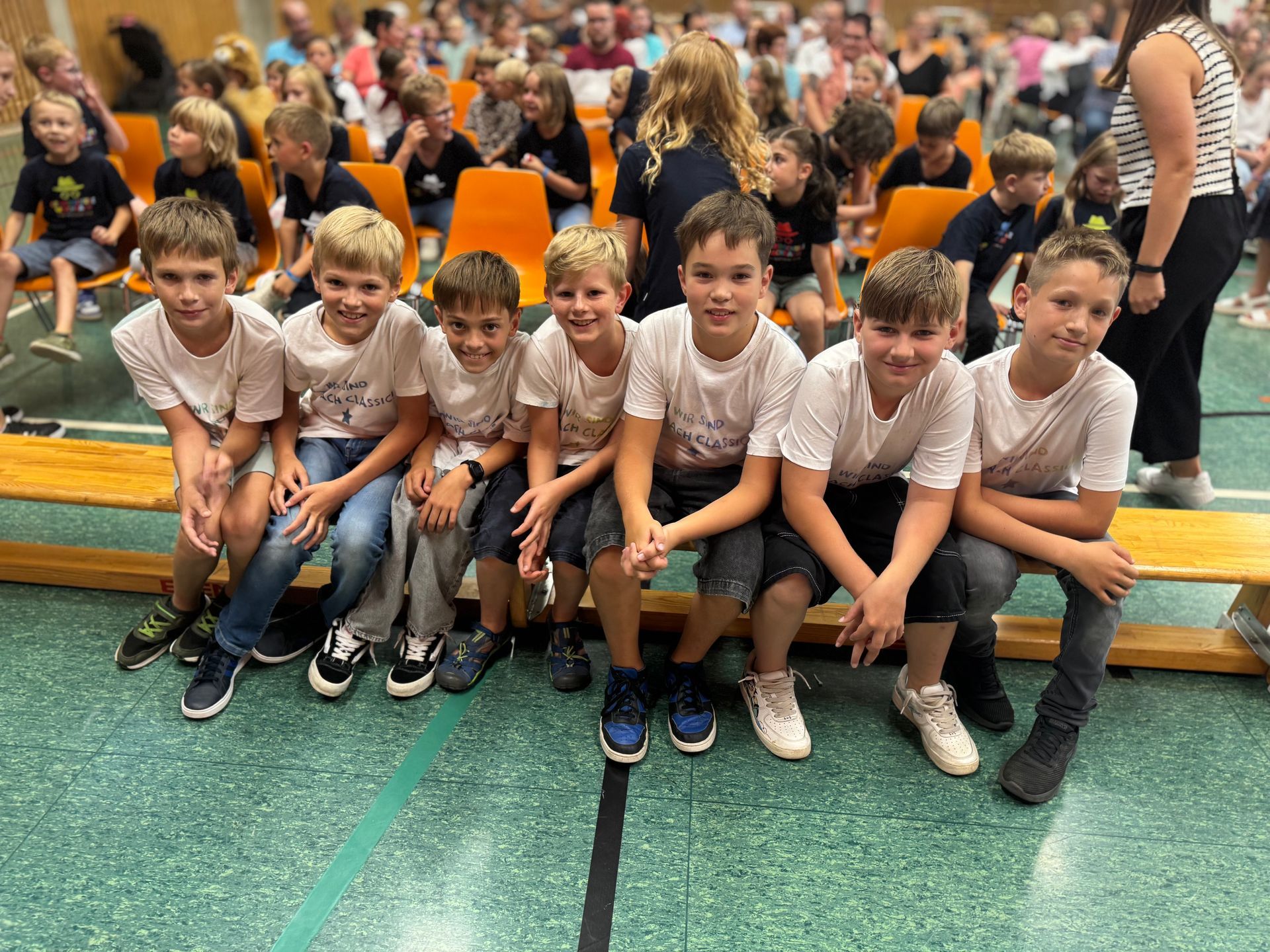 Die Klassen 2, 3 und 4 hatten ein buntes Programm vorbereitet, mit dem sie die Schulanfänger herzlich begrüßten. Danach war der große Moment gekommen: Die neuen Erstklässler wurden auf die Bühne gerufen und erlebten anschließend ihre allererste Unterrichtsstunde.