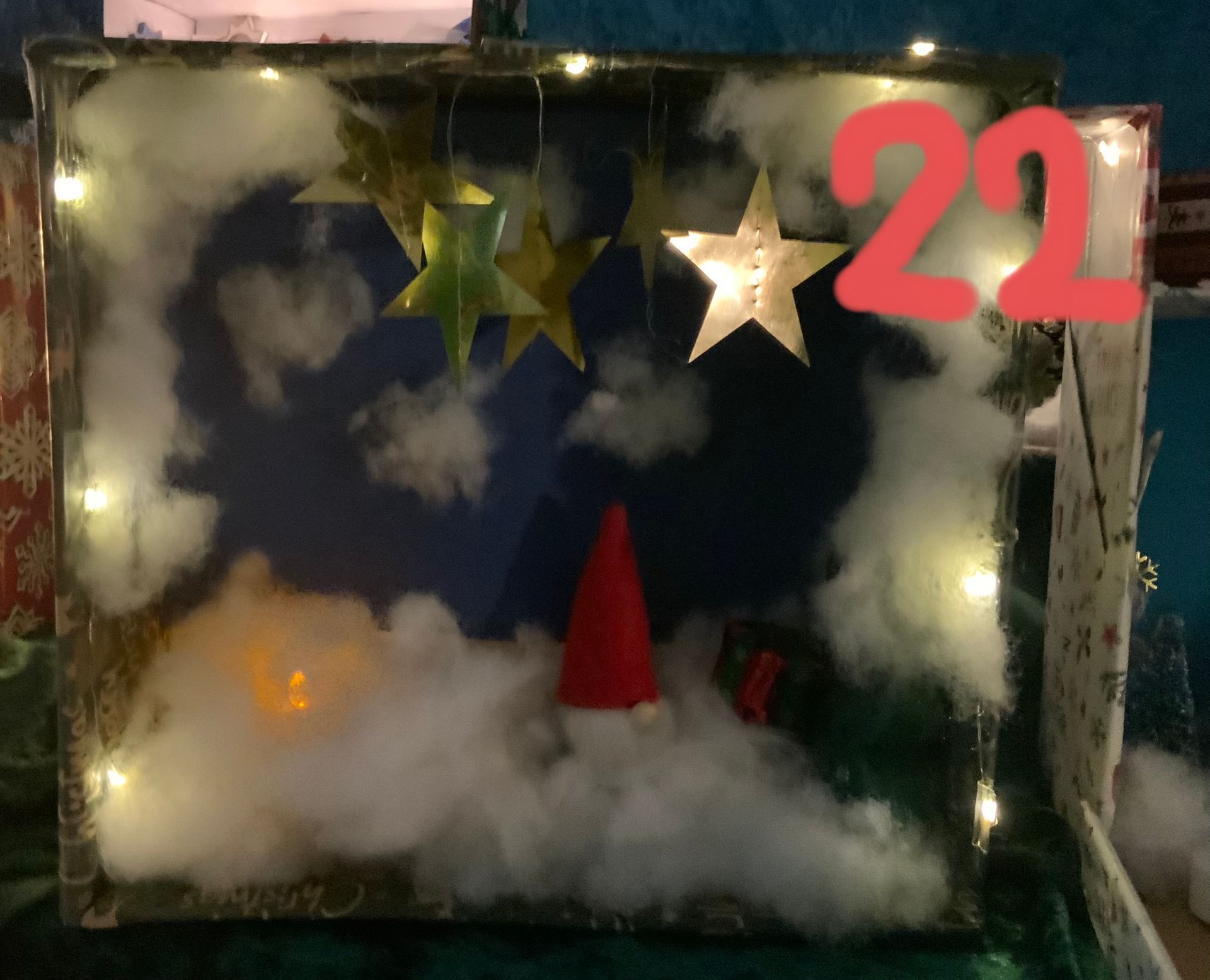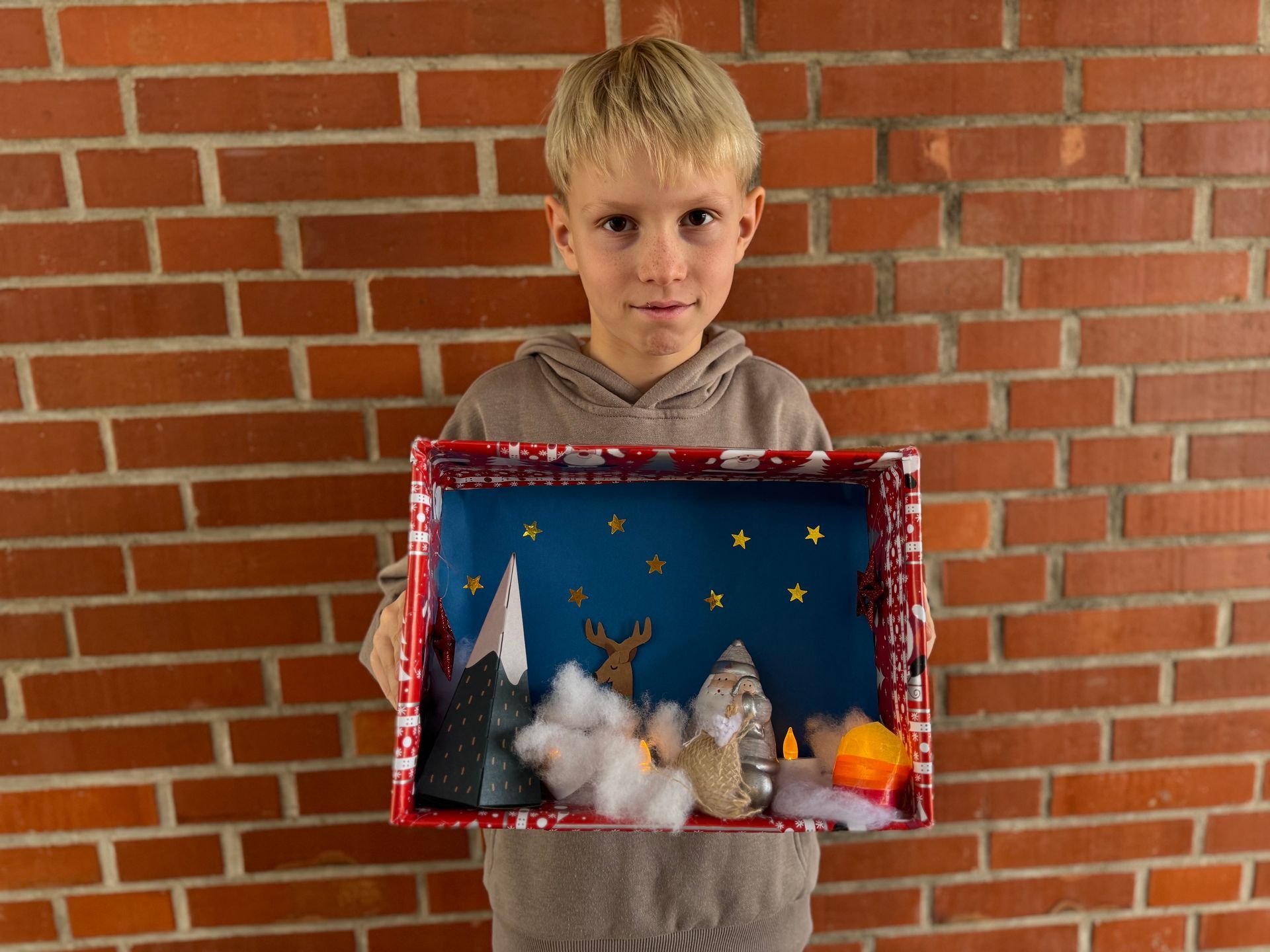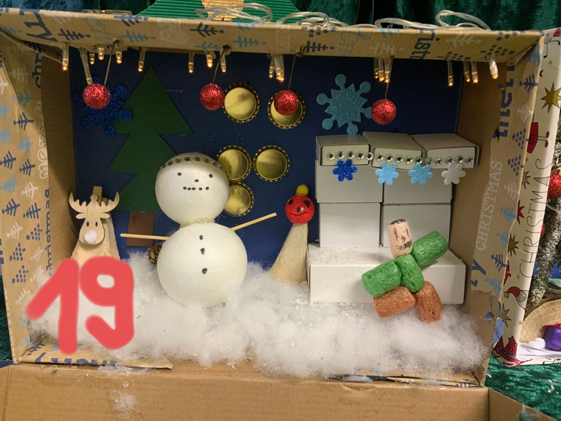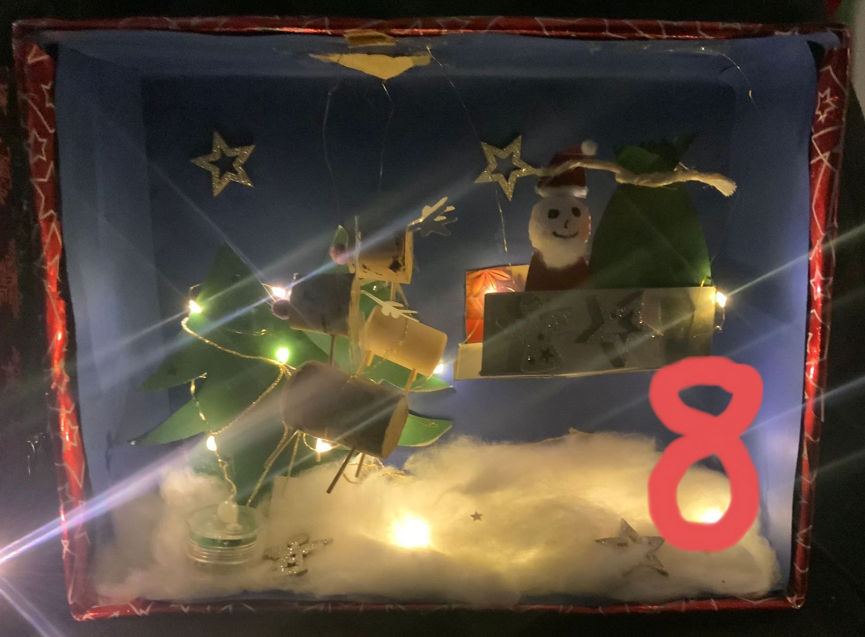 Adventskalender, der von der vierten Klasse mit viel Liebe und Kreativität gestaltet wurde. Die Kinder haben fleißig gebastelt und jedes Kind hat für einen Tag einen eigenen Schuhkarton gfertigt.