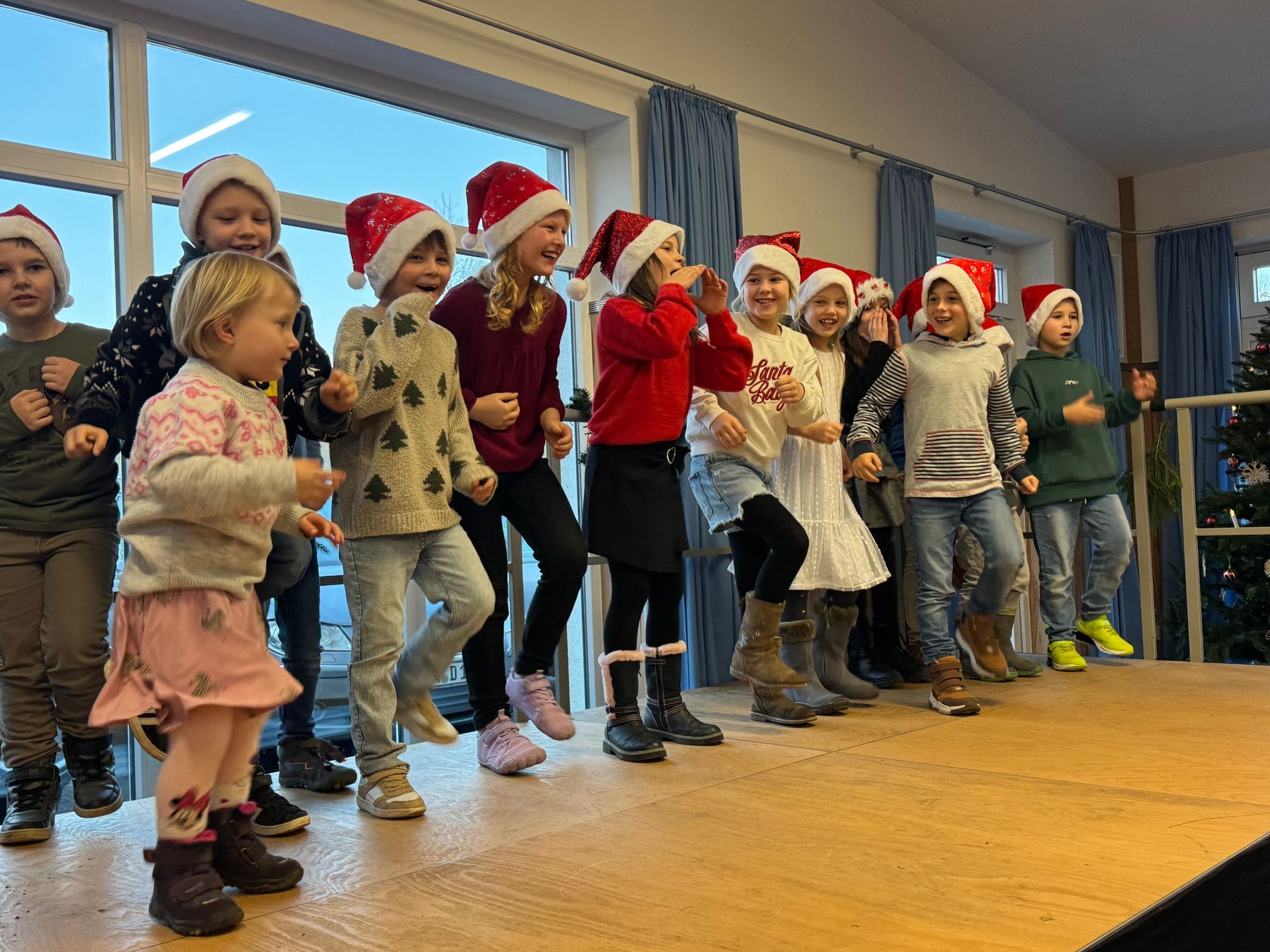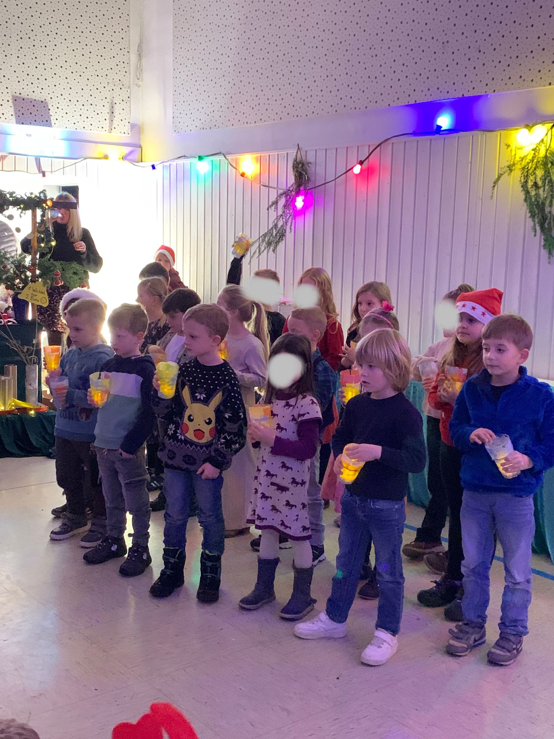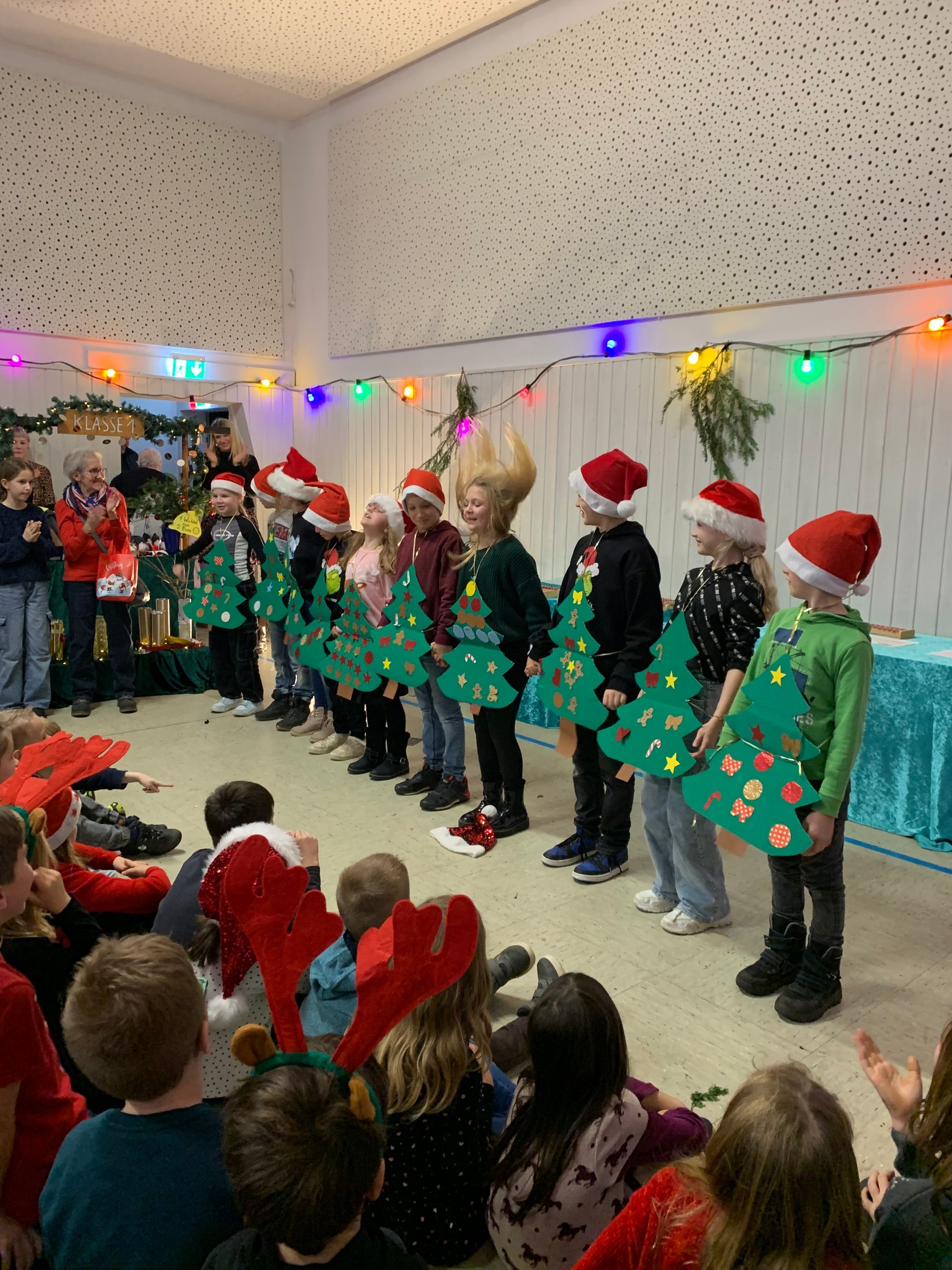 Am 19.12.24 war die ganze Schule in Wachbach in der alten Turnhalle. Die 3. Klasse hat die 10 kleinen Nikoläuse aufgeführt. Ich hatte die Rolle "schmilzender Nikolaus". Nach der Aufführung habe ich mit meinen Freunden Luke und Leon Verstecken gespielt. Am Ende war ich an unserem Weihnachtsmarktstand und habe verkauft.