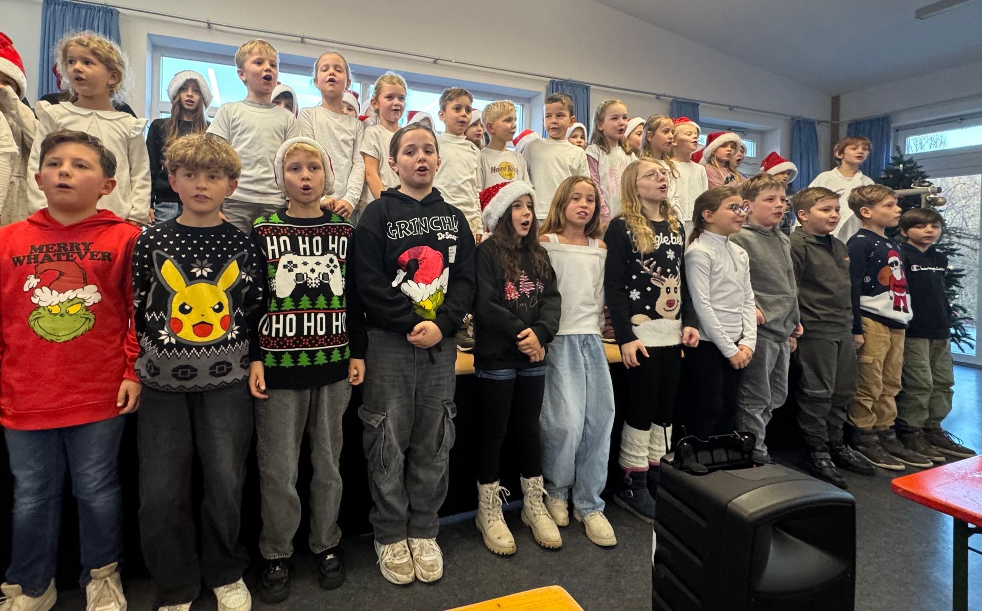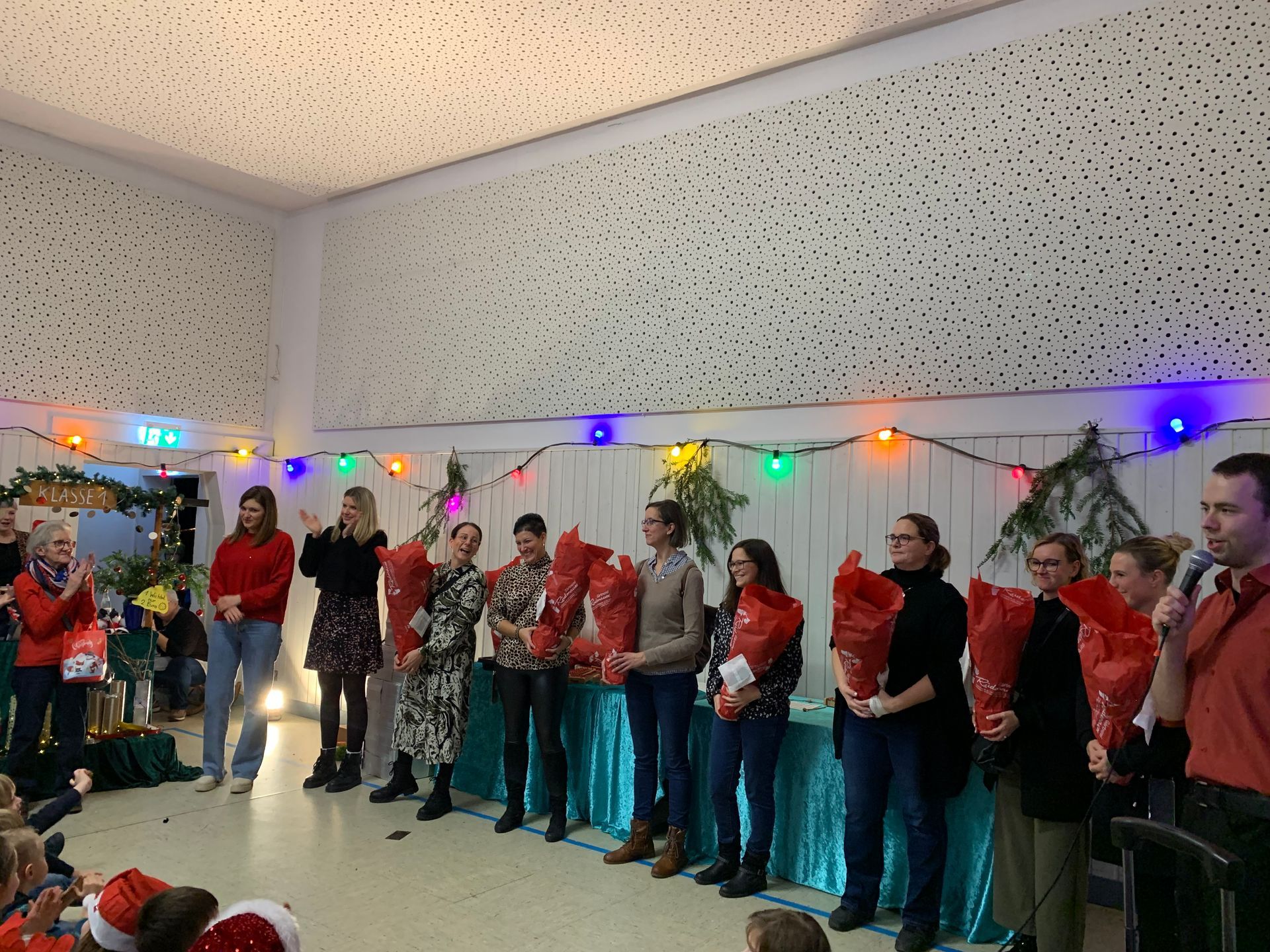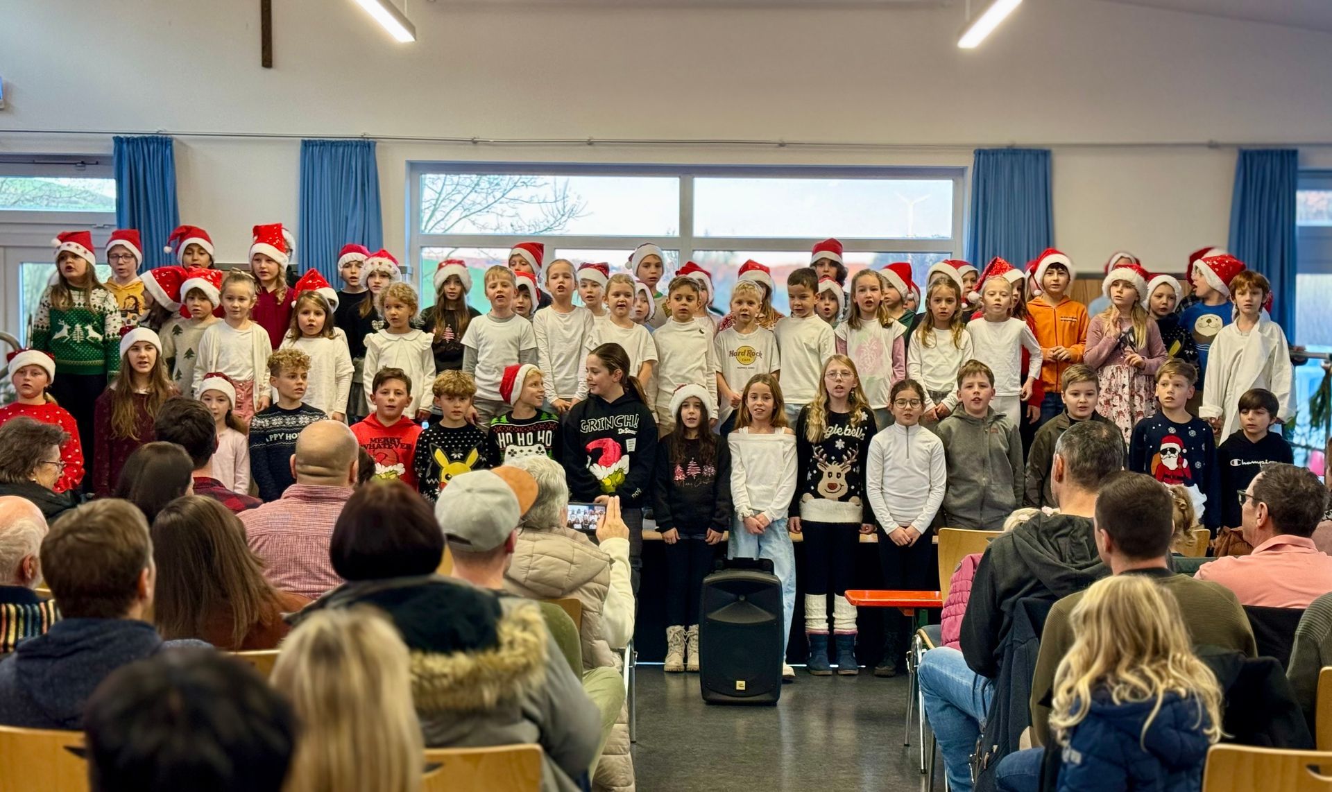 Anschließend begeisterten die Schülerinnen und Schüler das Publikum mit verschiedenen Auftritten, darunter „In der Weihnachtsbäckerei“, ein stimmungsvoller Lichtertanz, Gedichte sowie weitere Tänze. Den Abschluss bildete das gemeinsame Lied „Feliz Navidad“, bei dem alle fröhlich mitsangen und mittanzten.