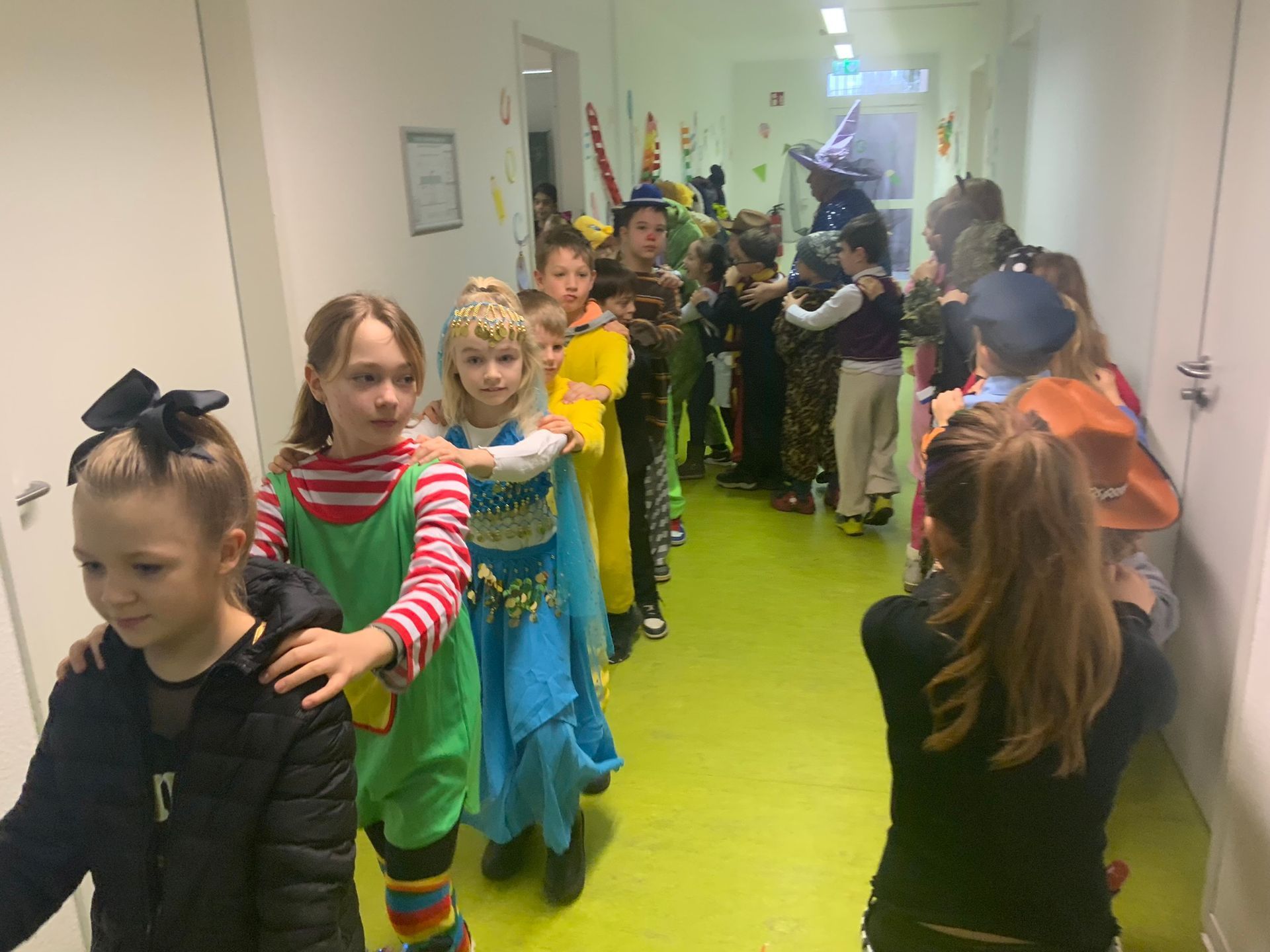 Am Freitag den 09.02.24 fand unsere Faschingsparty statt. Alle Kinder kamen verkleidet in die Schule. Es wurde gespielt, getanzt und mit der Grundschule Au eine Polonaise über den Pausenhof gemacht.