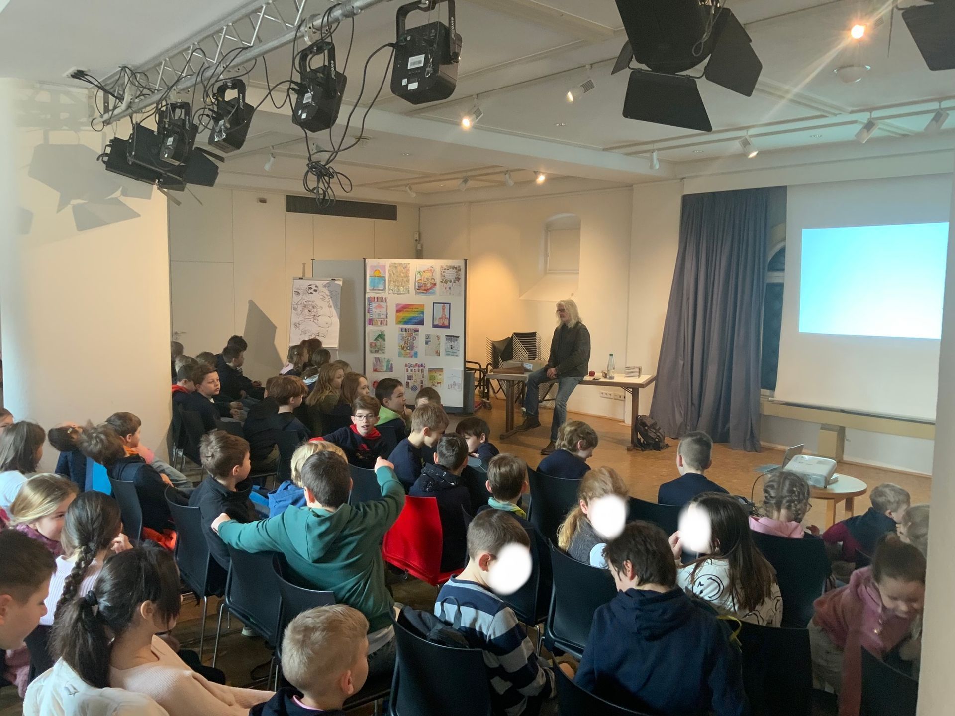 Am 07.03.24 besuchten die Klassen 3 und 4 die Lesung des bekannten Kinderbuchautors Joachim Masannek im Bürgersaal des Kulturforums. Im Zuge der Kinder- und Jugendbuchwoche besuchte der Autor Bad Mergentheim und erzählte von seiner berühmten Kinderbuchrei "Die Wilden Kerle". Die Schüler hörten "wilde" Geschichten und schauten sich Ausschnitte aus seinen Filmen an.
