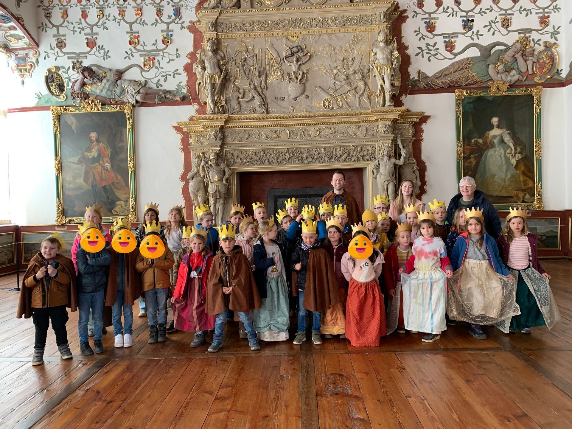 Am 25. März machten sich die Klasse eins und zwei gemeinsam mit dem Zug auf zum Schloss nach Weikersheim. Dort wurden wir bereits von strahlendem Sonnenschein auf dem Spielplatz empfangen. Im Anschluss gab es eine Führung im Schloss Weikersheim zum Thema Märchen. Dort lernten wir die Salzprinzessin kennen und ebenso wie man königlich im Schloss knickst und wie das Leben zu damaligen Zeiten war. Die Führung wurde durch einen gemeinsamen Tanz beider Klassen im großen Festsaal abgeschlossen. Es folgte noch eine Pause auf dem Marktplatz in Weikersheim, der auch den leckeren Besuch des Eiscafes „Al Castello“ mit zwei Kugeln Eis einschloss. Nach einer weiteren Runde auf dem Spielplatz machten wir uns wieder mit dem Zug zurück nach Bad Mergentheim.