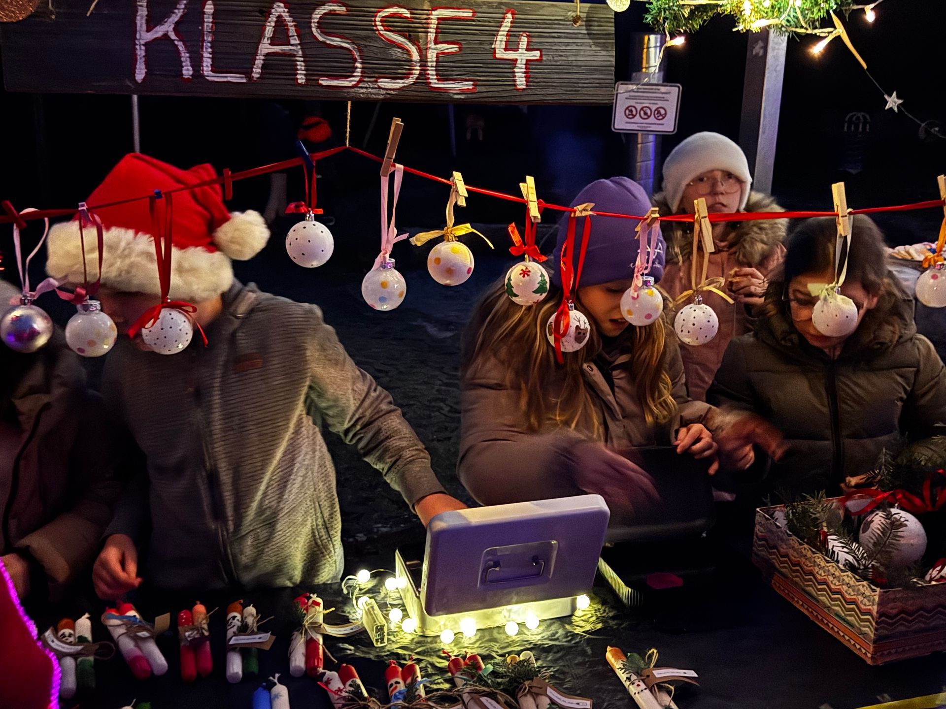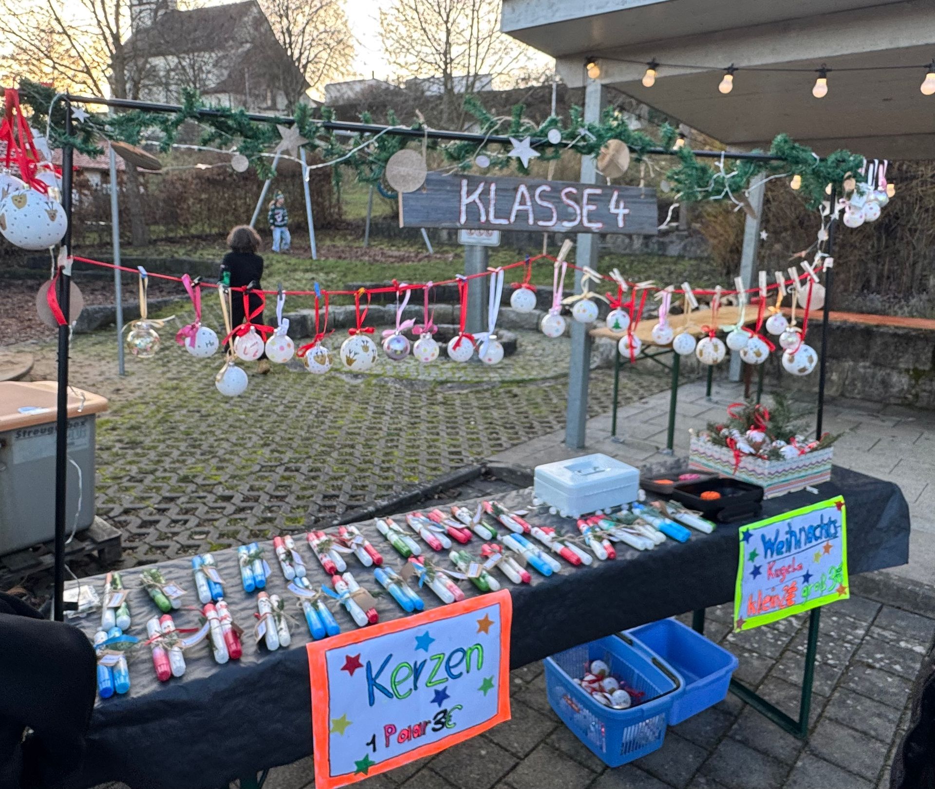 Im Anschluss an das Programm fand ein kleiner Weihnachtsmarkt statt, auf dem selbst gebastelte Sachen zugunsten der Klassenkassen verkauft wurden.