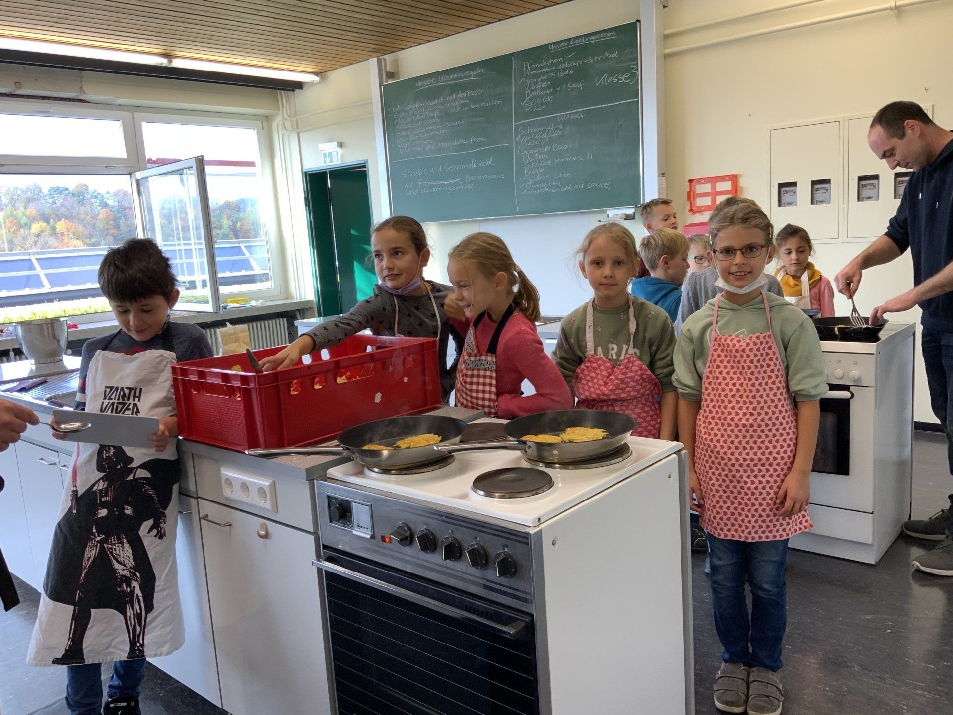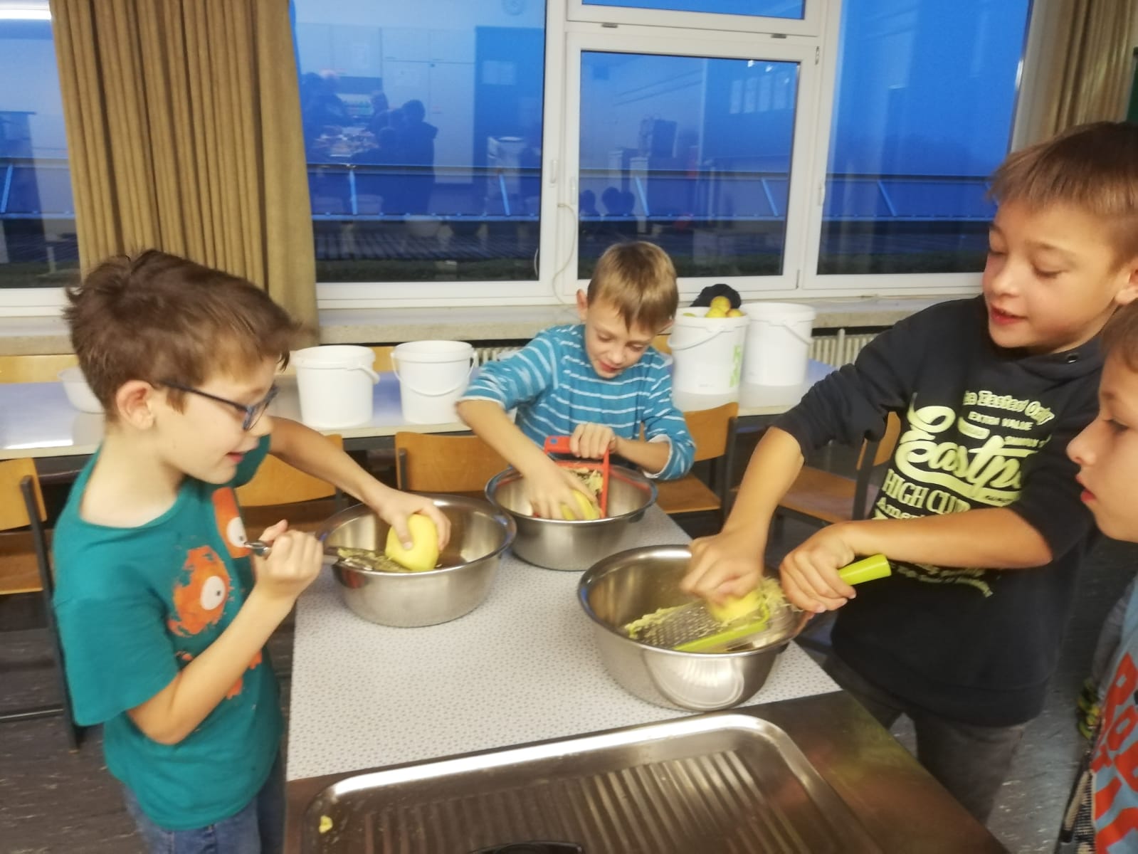 Am 26. Oktober durften die Klassen 1 und 3 Reibekuchen mit Apfelmuß herstellen. Klasse 1 hatte im Sachunterricht das Thema Apfel und Klasse 3 das Thema Kartoffel behandelt, sodass beide Klassen ihr Wissen bei der Zubereitung umsetzen konnten.