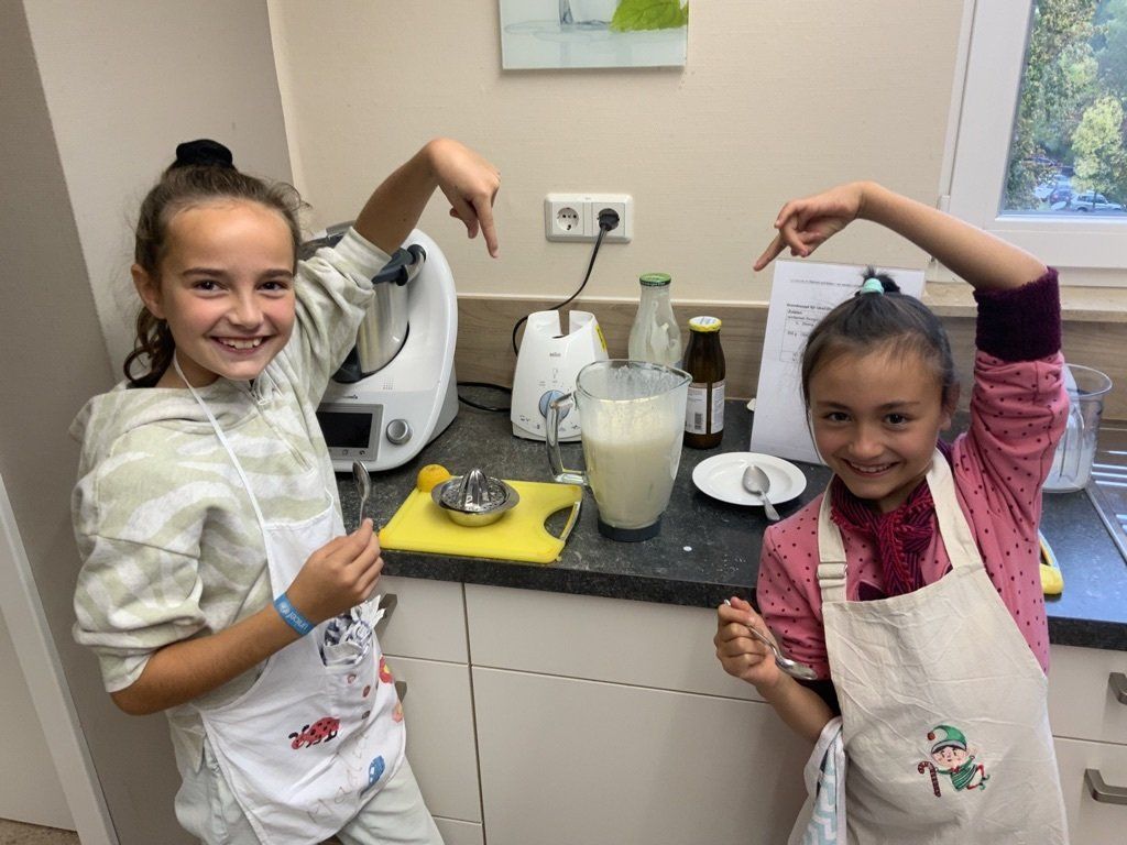 Am Freitag, den 21.10.22 gingen wir (Klasse 4) ins Landwirtschaftsamt in Bad Mergentheim. Dort besuchten wir die Lernwerkstatt Wertvoll und lecher-Wir werden Lebensmittelretter. Erst begrüßten wir uns und dann wurden wir in zwei Gruppen eingeteilt. Eine Gruppe kochte Bananen-Milchshake, Gemüsesuppe, Nudelauflauf, Tomatensoße und nebenbei wurden noch Wachstücher hergestellt. Die andere Gruppe lernte an verschiedenen Stationen mehr über Lebensmittel kennen. Dann tauschten die Gruppen. Zum Schluss aßen wir noch das, was wir gekocht hatten.
